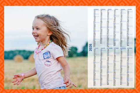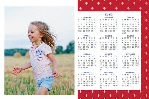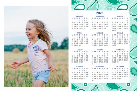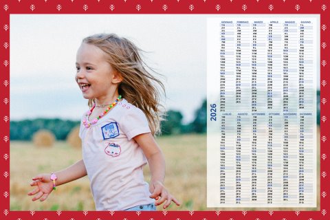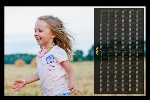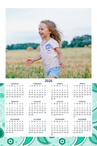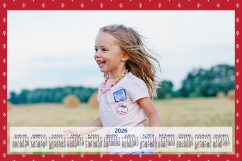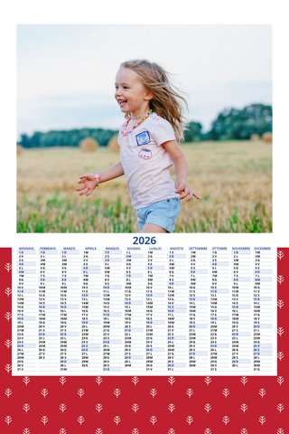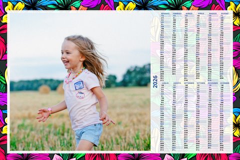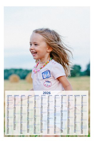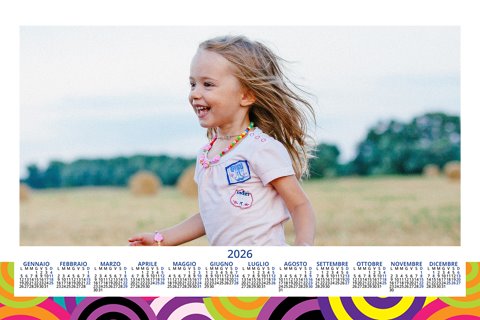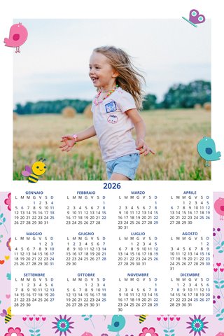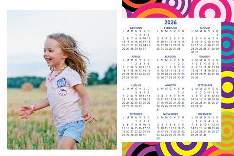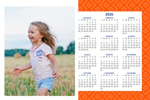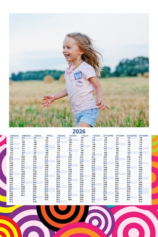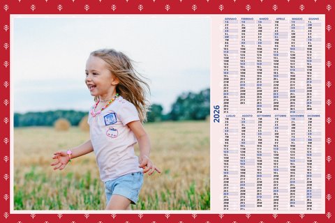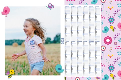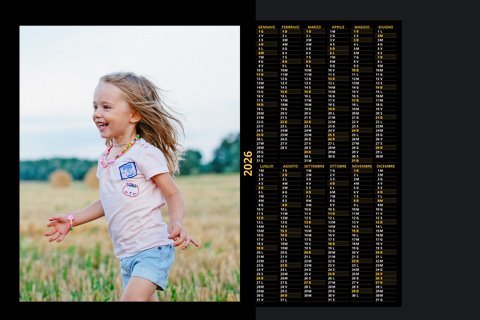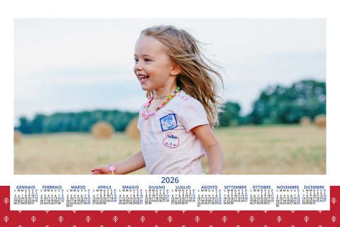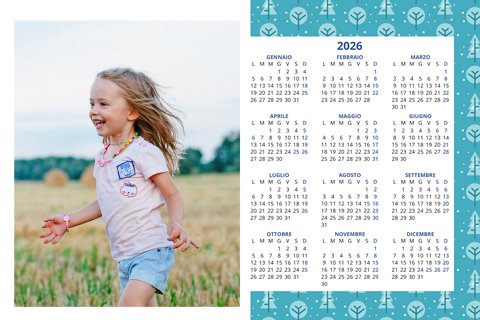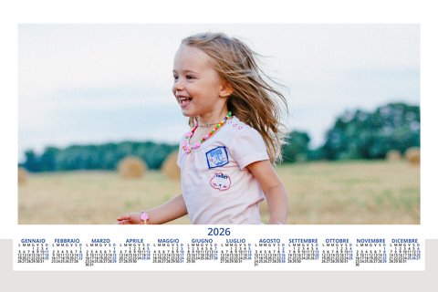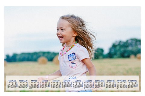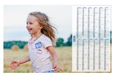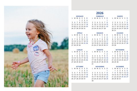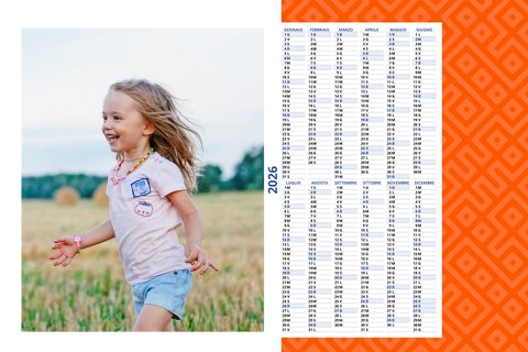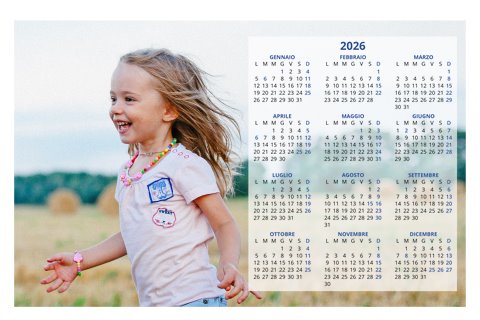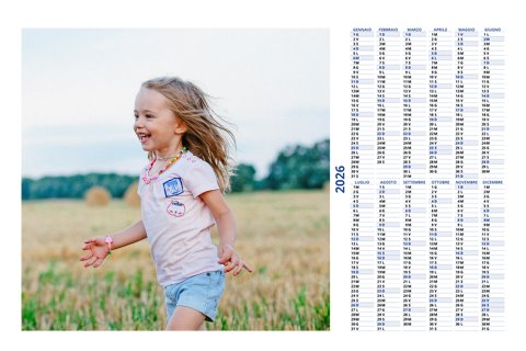- Opzione “No Grafica” disponibile, per la massima libertà creativa: carica per ogni mese un file con la tua composizione, completa di immagini e datario. Ricorda di rispettare i margini di taglio (2%) e la rilegatura superiore (circa 8 mm).