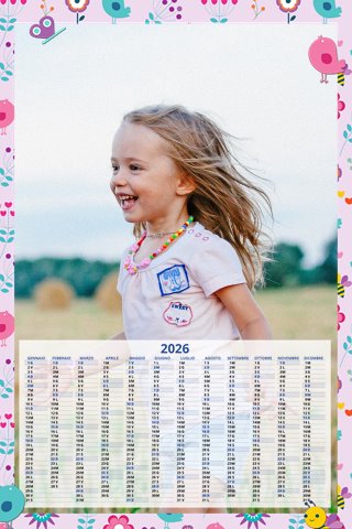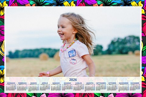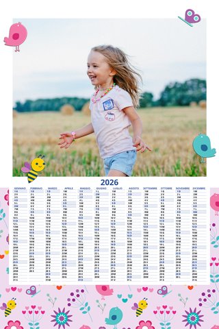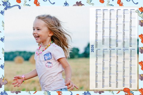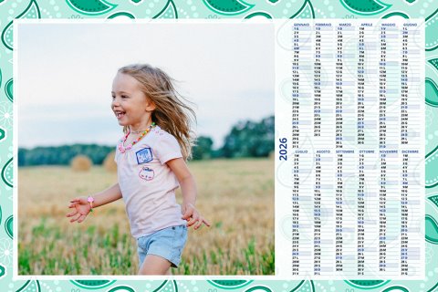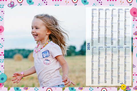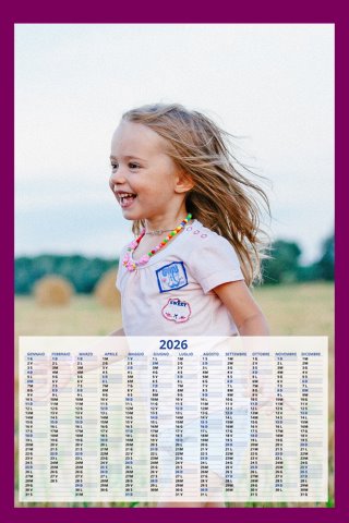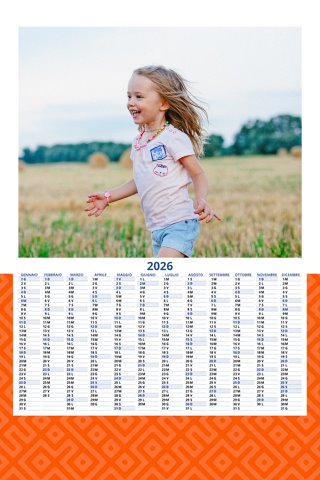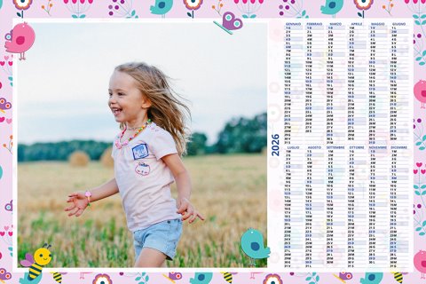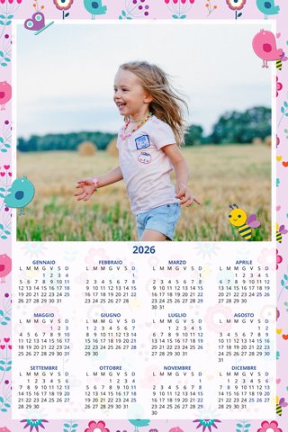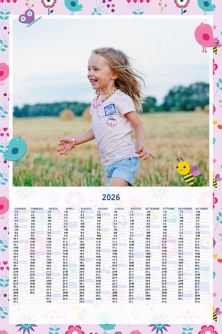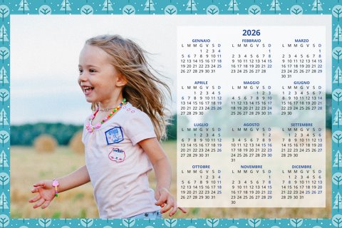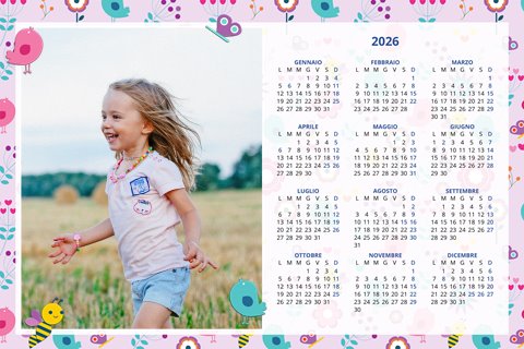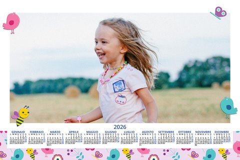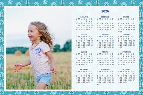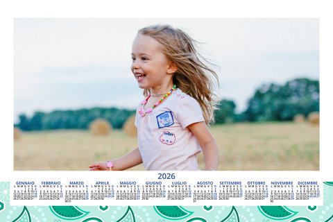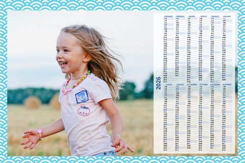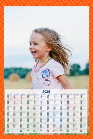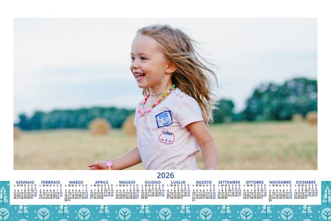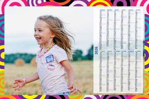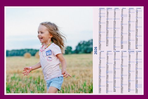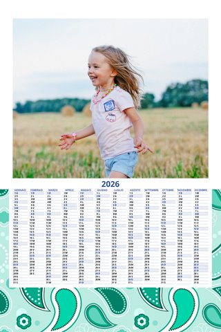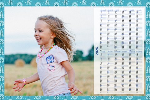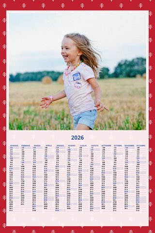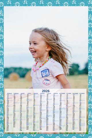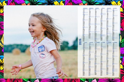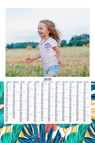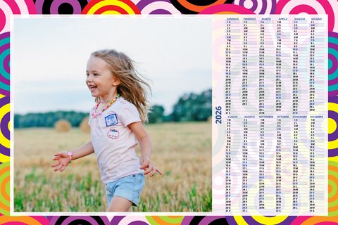 - Opzione “No Grafica” disponibile, per la massima libertà creativa: carica per ogni mese un file con la tua composizione, completa di immagini e datario. Ricorda di rispettare i margini di taglio (2%) e la rilegatura superiore (circa 8 mm).