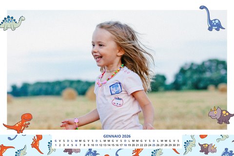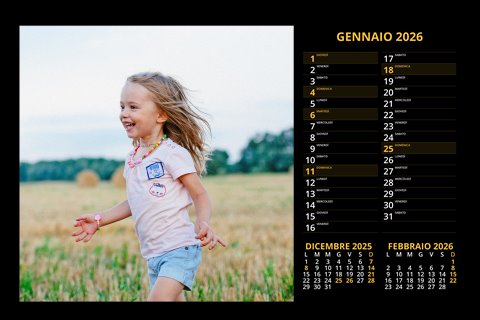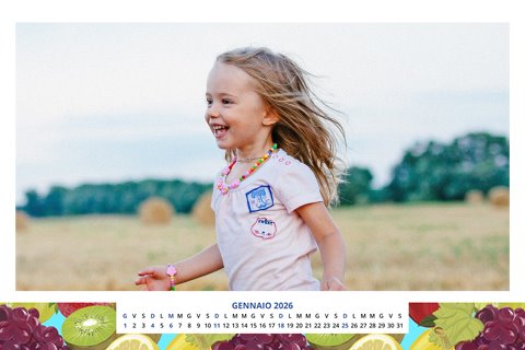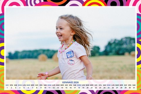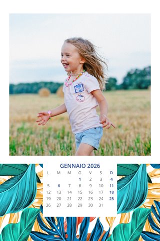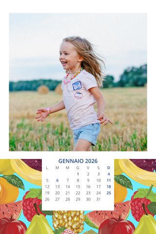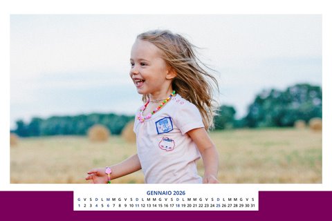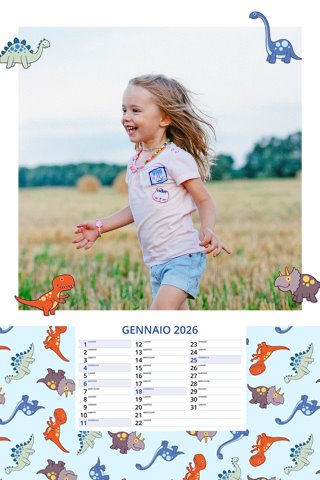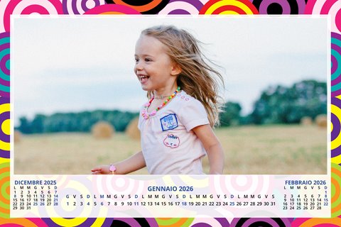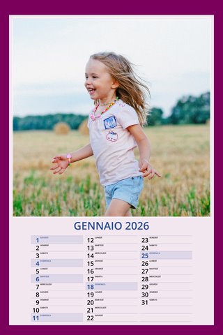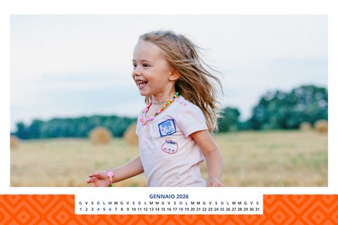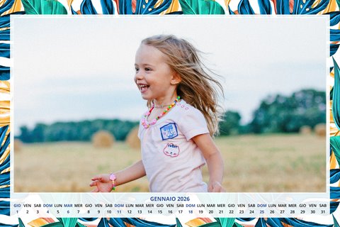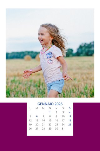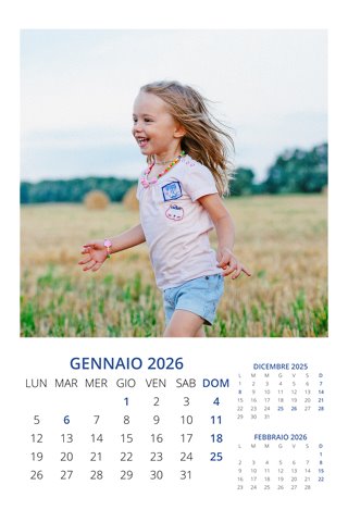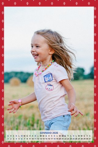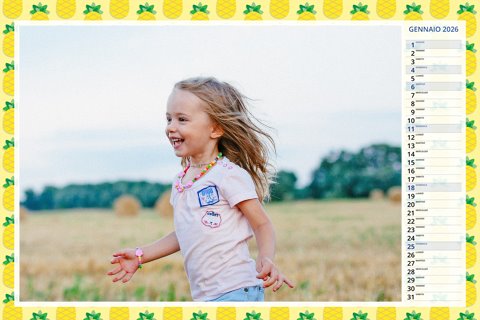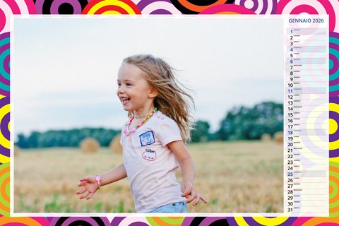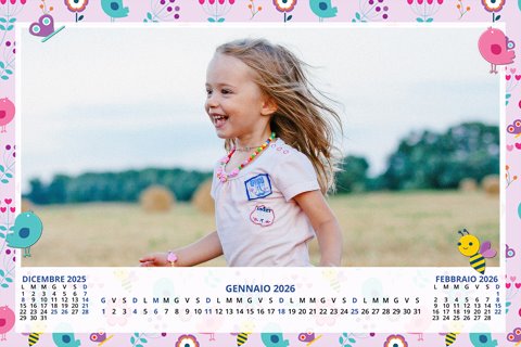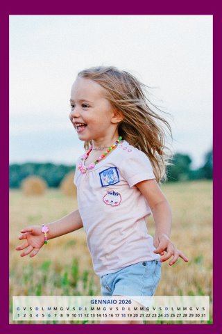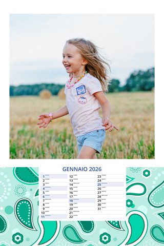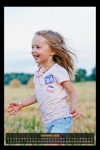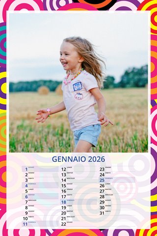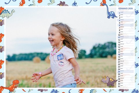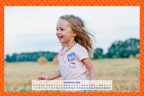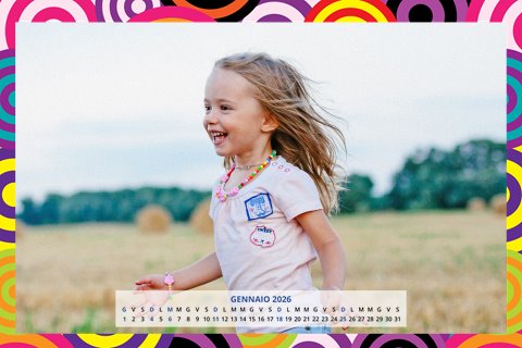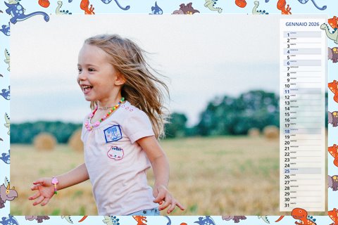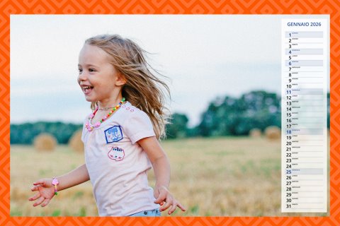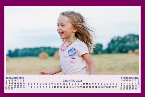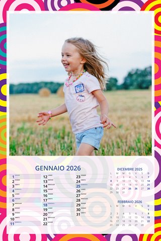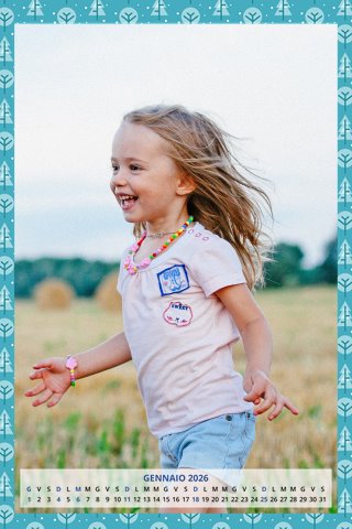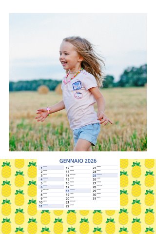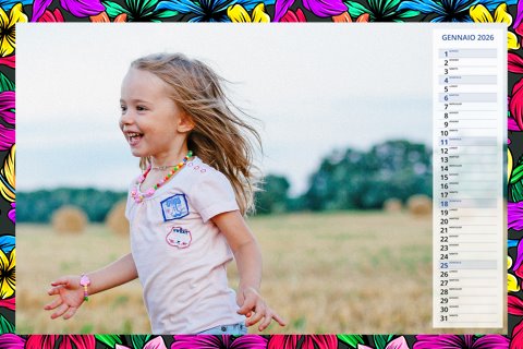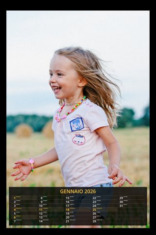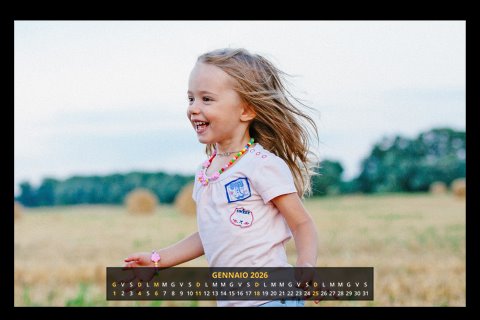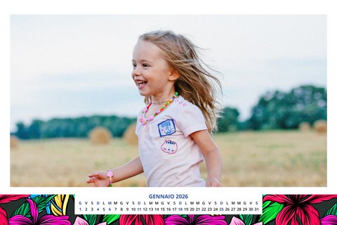 - Opzione “No Grafica” disponibile, per la massima libertà creativa: carica per ogni mese un file con la tua composizione, completa di immagini e datario. Ricorda di rispettare i margini di taglio (2%) e la rilegatura superiore (circa 8 mm).