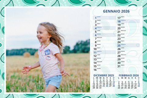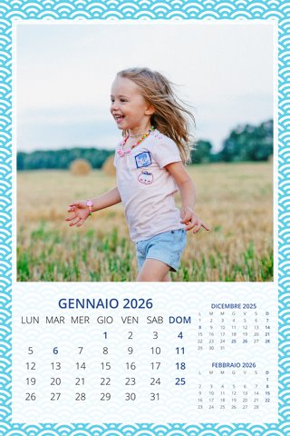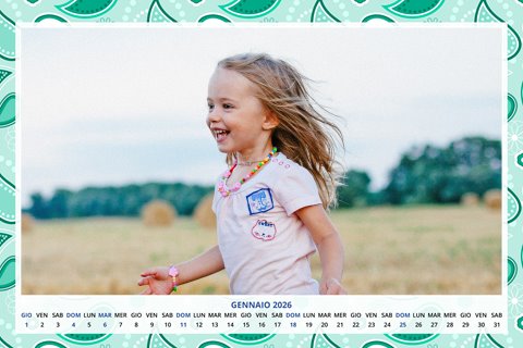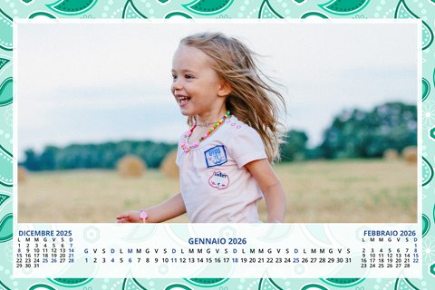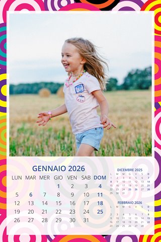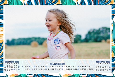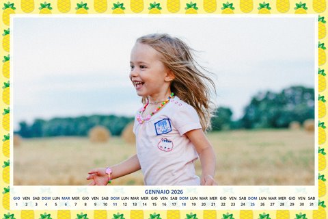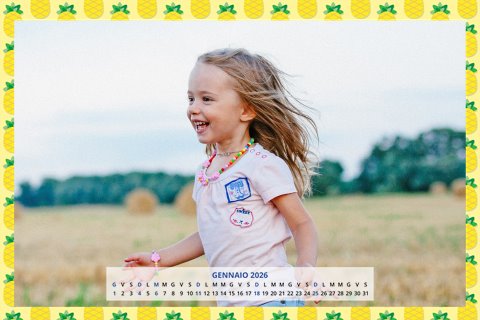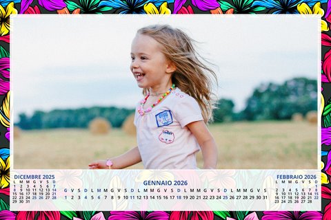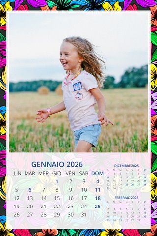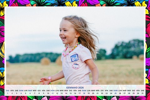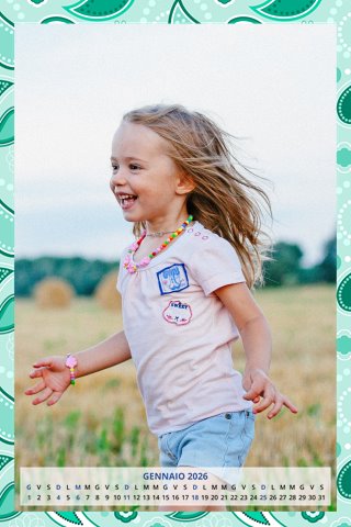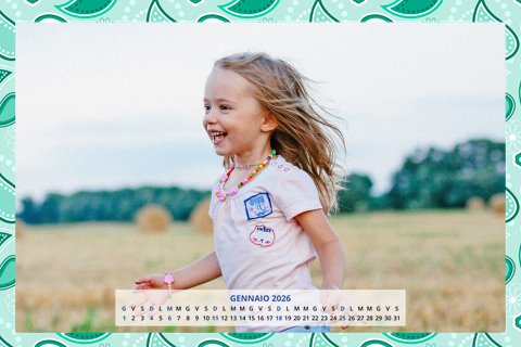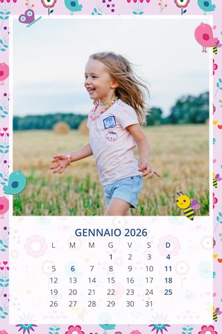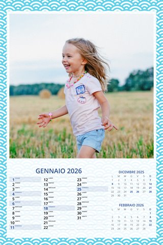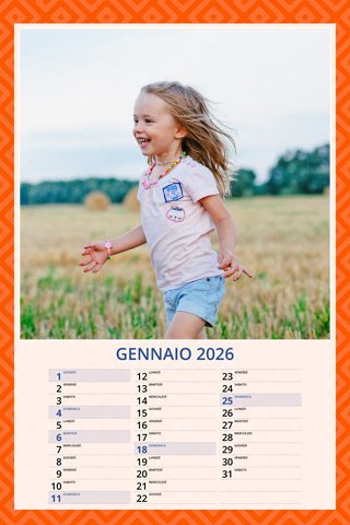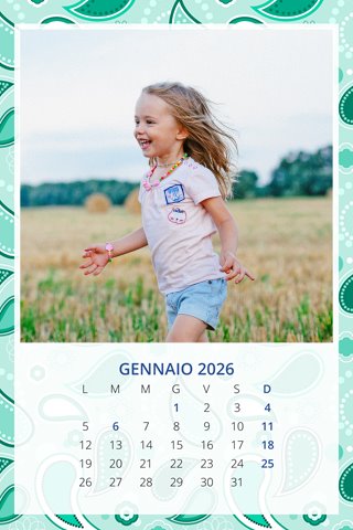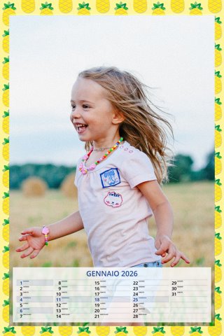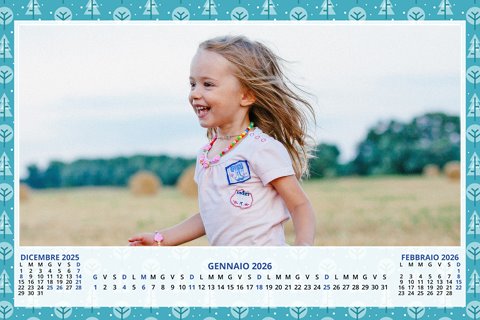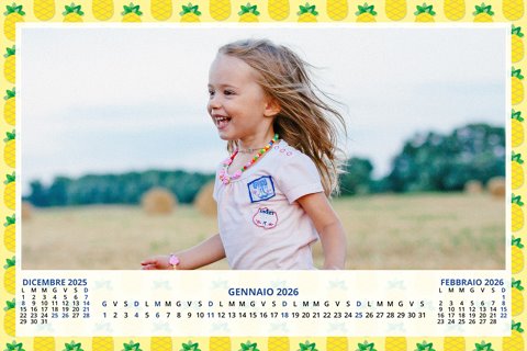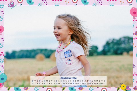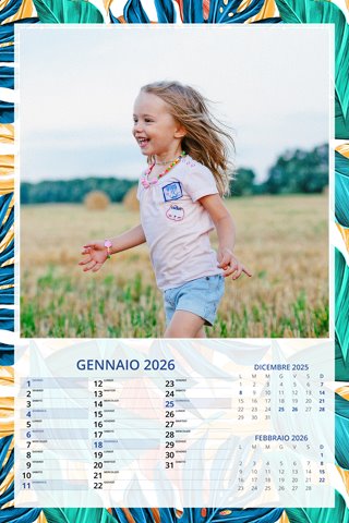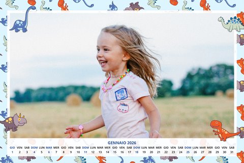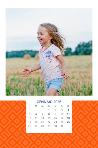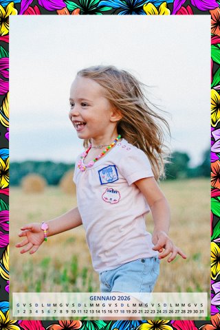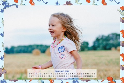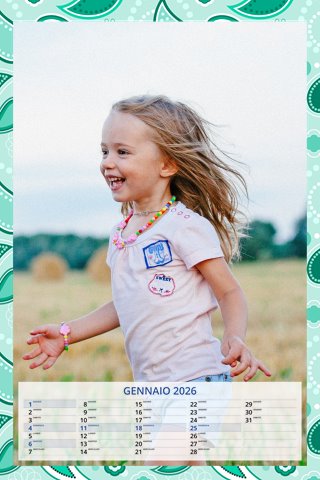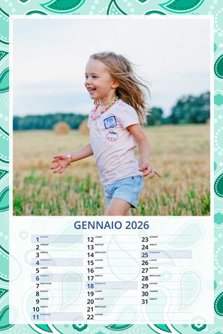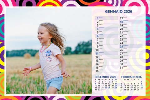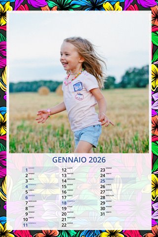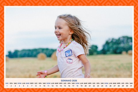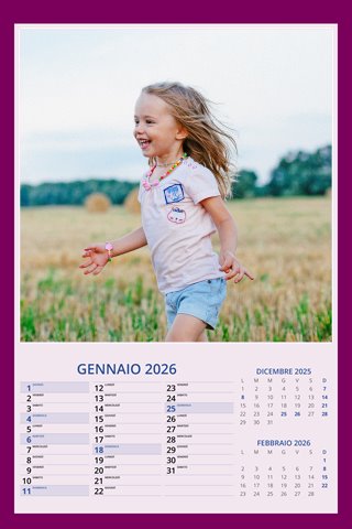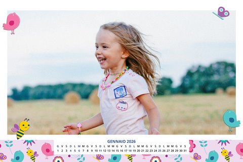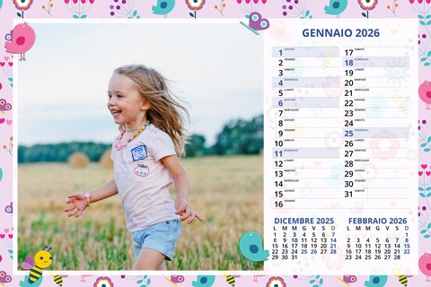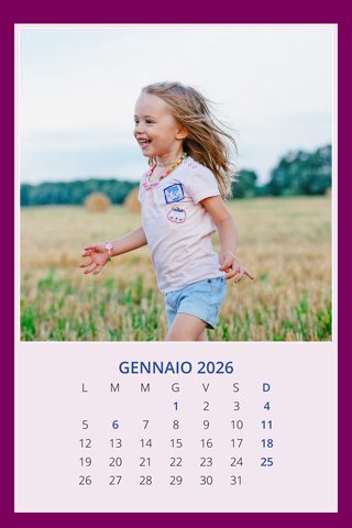 - Opzione “No Grafica” disponibile, per la massima libertà creativa: carica per ogni mese un file con la tua composizione, completa di immagini e datario. Ricorda di rispettare i margini di taglio (2%) e la rilegatura superiore (circa 8 mm).